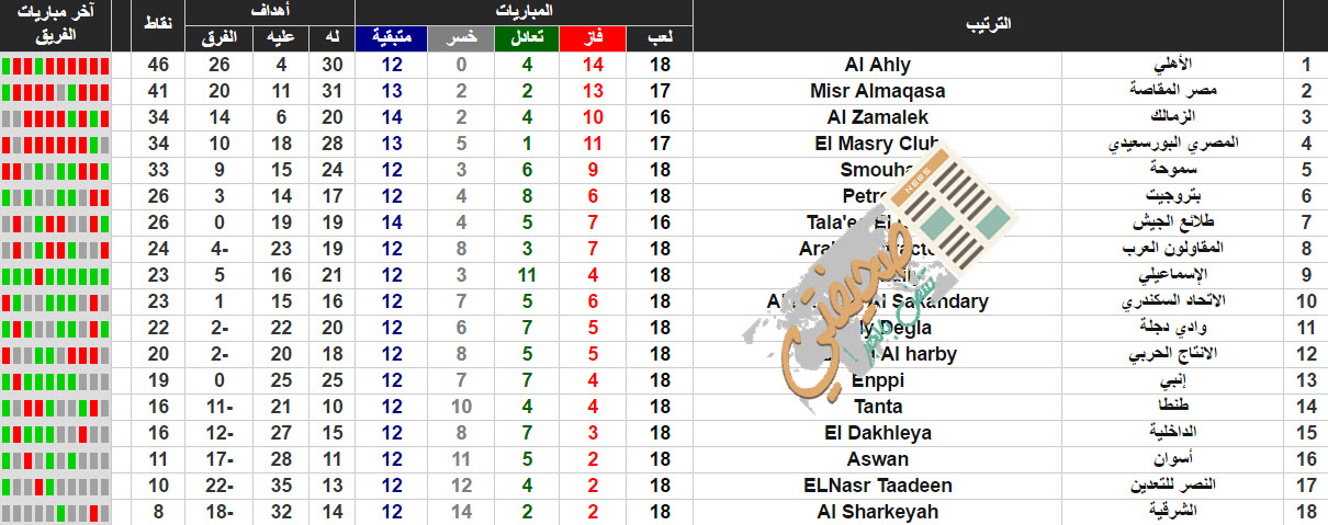 جدول ترتيب الدورى المصرى
